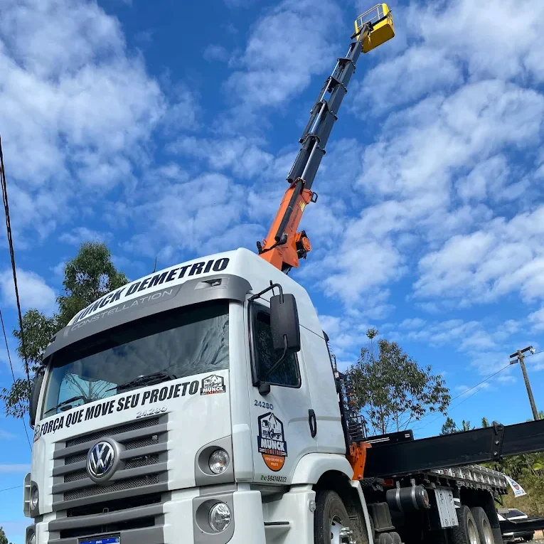 Desde 2025, a Munck Demetrio atua com excelência em serviços de içamento, remoção e transporte de cargas pesadas. Somos especializados em atender obras, indústrias e empresas de logística, oferecendo soluções seguras, planejamento técnico e atendimento rápido em toda a região do Vale do Itajaí.